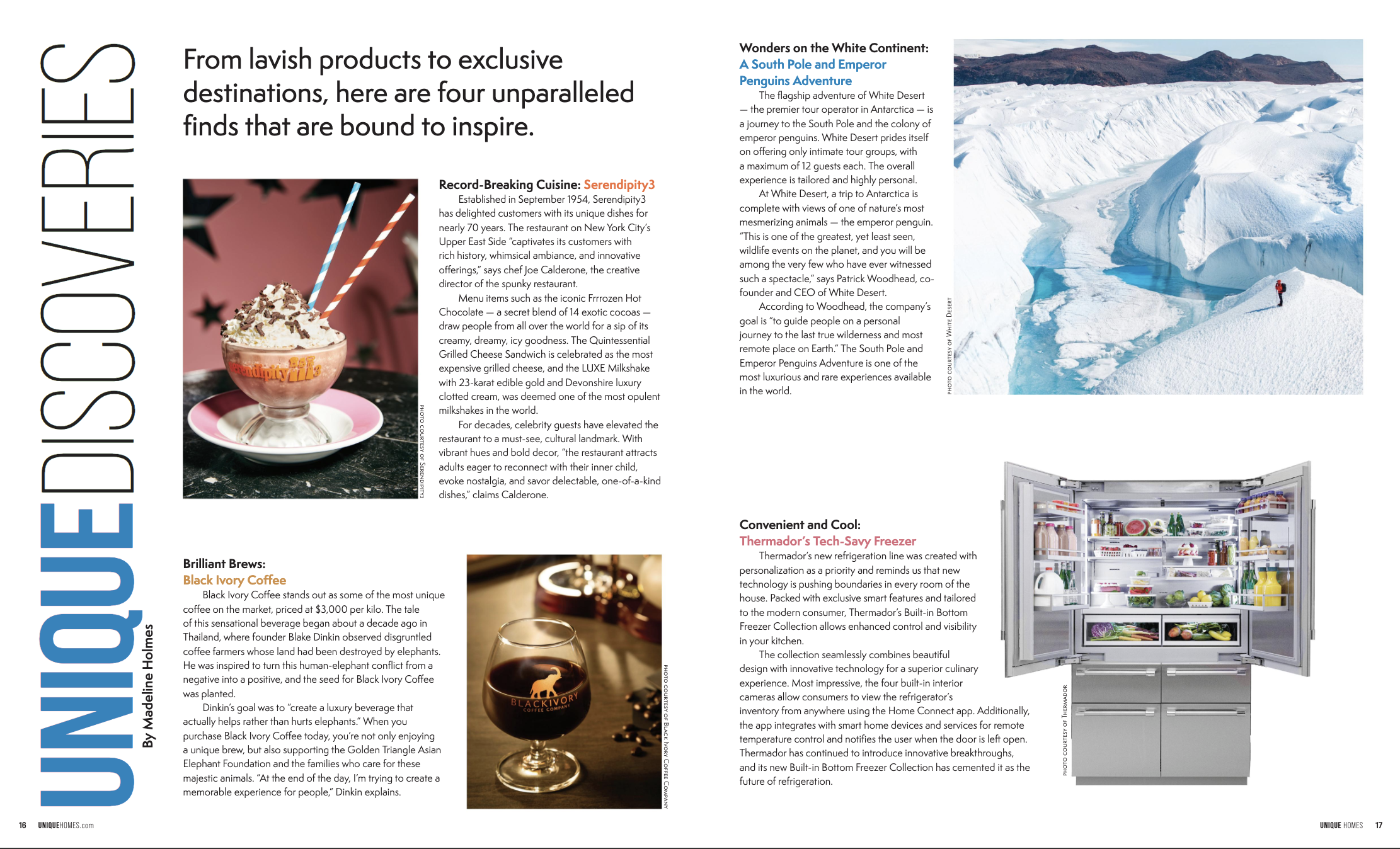 During my internship with Unique Homes Media I was able to write two published stories. The first is for their flagship publication Unique Homes and is called Unique Discoveries. The second story was written for The High End Magazine and is called Capture the Magic.